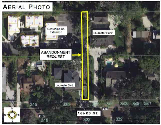 Benjamin & Desiree Hilgers are going to abandon an unnamed 1884 .07 acre 227 ft long 14 ft wide never constructed, never used alley right-of-way. The alley is east of 325 Agnes St., north side of Agnes St., between Delaney & Lake Aves.). It's located in the Lake Cherokee neighborhood adjacent to two (2) single-family homes and a residential condominium.